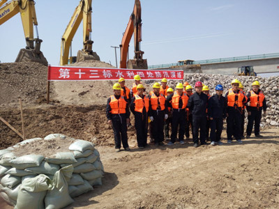 該項工程于2015年8月30日正式開工。施工過程中,公司項目部科學(xué)運(yùn)籌,高標(biāo)準(zhǔn)、嚴(yán)要求,堅持以創(chuàng)建優(yōu)質(zhì)工程為奮斗目標(biāo),以實(shí)施全過程的工程質(zhì)量控制、安全生產(chǎn)標(biāo)準(zhǔn)化、文明施工為載體,經(jīng)過精心編制施工方案,科學(xué)組織施工,加強(qiáng)全過程動態(tài)管理與控制,積極克服困難,工程施工建設(shè)順利進(jìn)行。截止到2016年6月末,共完成總投資7000余萬元,完成合同額56.9%,其中土方工程完成5052萬元,石方工程完成1025萬元,混凝土及其他工程共完成233萬元;完成備料690萬元。